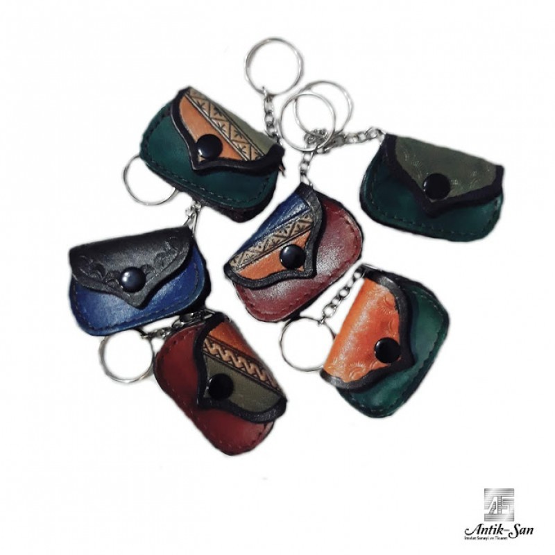 Kösele deriden üretilen çanta şeklinde anahtarlık. İçerisi küçüktür lakin kullanılabilecek şekilde üretilmiştir çıtçıtı açılarak içerisi kullanılabllmektedir.