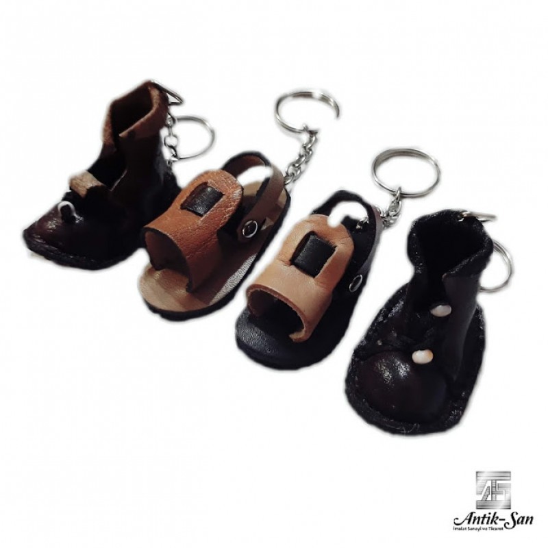 Sandalet şeklinde maskot olarak kösele deriden üretilen anahtarlık.