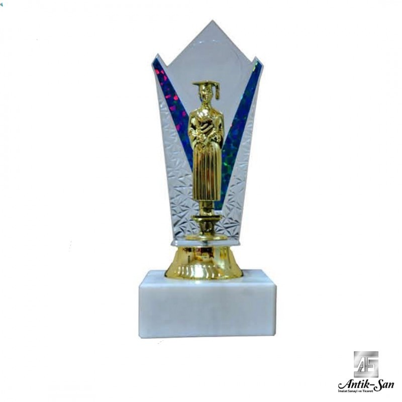 Üzerinde mezun öğrenci figürü bulunan ödül kupası. Ürüne yazılmasını istediğiniz yazı ve eğer eklemek istiyorsanız logoyu ürün sayfasının alt bölümünde bulunan ürün özelleştirme bölümünden bildirebilirsiniz.