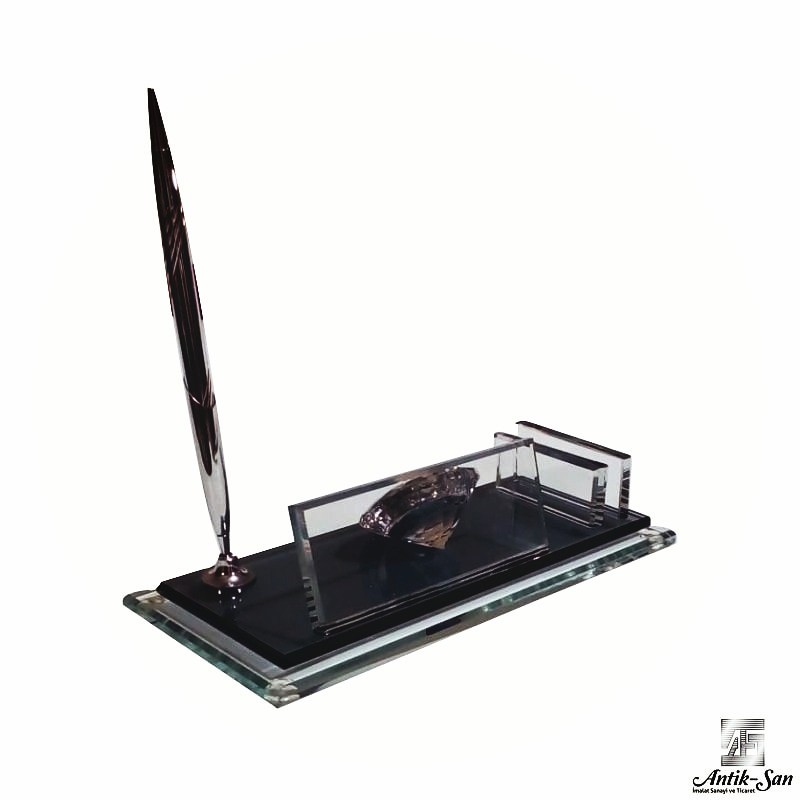 Üzerinde saat kalem ve kartvizitlik bulunan masa üzeri hediyelik isimlik. Kapıda ödeme kolaylığı ile satın alabileceğiniz isimliği sipariş verirken ürün sayfasının alt ksıımında bulunan ürün özelleştirme bölümünden yazılacak yazı ve eğer eklenecekse logoyu belirtebilirsiniz. Kargo süresi 1-5 iş günüdür.