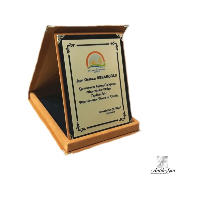 Plaket kutularımızın kasası mukavva değil ahşaptır. Ürünü sepete eklemeden önce ürün sayfasından yazılacak olan yazıyı ve logoyu eklemeyi unutmayınız sipariş geçildiğinde tasarım yapılıp mail adresinize veyahut telefon numaranıza whatsapp dan yollanacaktır. Onayınızla beraber baskı işlemi yapılıp plaket hazır hale getirilecektir. Kargoya teslim edilip kargo takip numarası tarafınıza iletilecektir. Sorularınızı bizimle iletişime geçerek tarafımıza iletebilirsiniz.